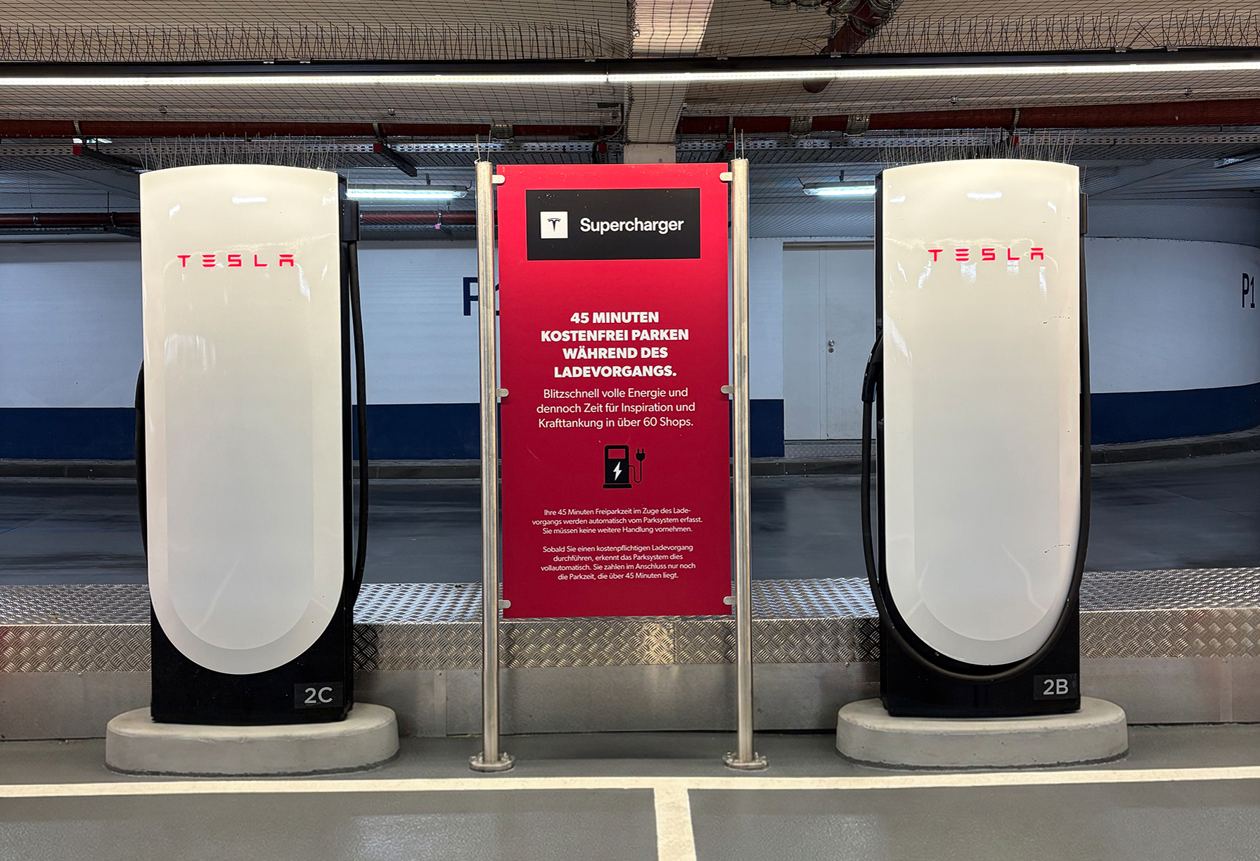 Die Supercharger sind über das Parkhaus der Marktplatz Galerie rund um die Uhr, an sieben Tagen in der Woche zugänglich.